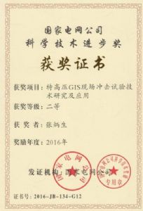 一種積木式充氣型沖擊電壓發(fā)生裝置-發(fā)明專利證書